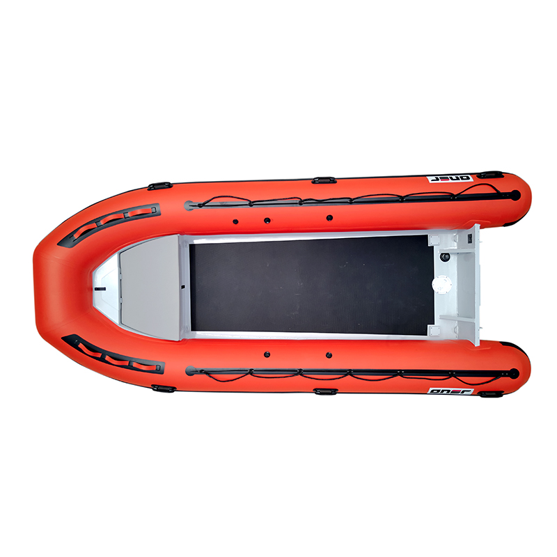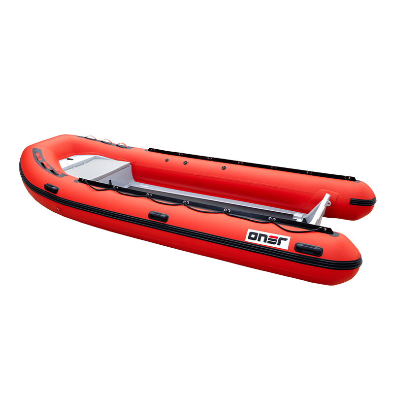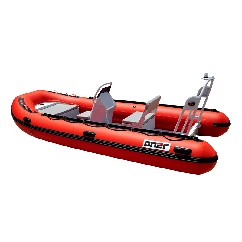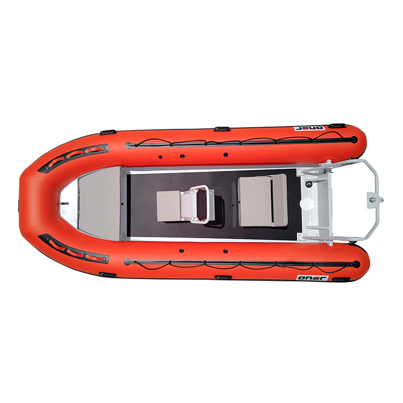 El bote de rescate naranja de alta resistencia ONER tiene un ancho interno de 105 cm y un ancho total de 205 cm. Su amplio ancho interno proporciona mucho espacio utilizable dentro de la cabina, con capacidad para 9-10 personas con una capacidad de carga máxima de 920 kg, lo que satisface en gran medida los requisitos de carga elevada del rescate acuático. La aleación de aluminio de 4 mm de espesor garantiza la rigidez y resistencia del casco. Cuenta con una cabina delantera donde puedes guardar artículos. Para este modelo, los usuarios pueden elegir paneles de control, asientos y una aleta trasera adecuados, combinados con un motor de 40 hp (29,82 kw), para explorar la diversión de la recreación acuática.