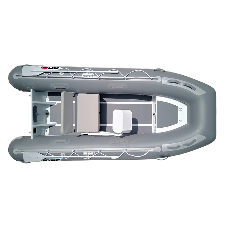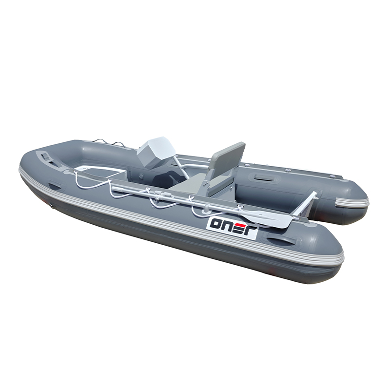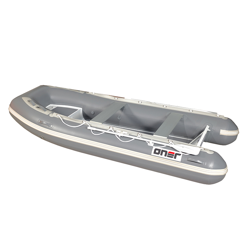 ONER RIB de aluminio de alta resistencia es una embarcación RIB de dos pisos con un marco de aleación de aluminio de 3 mm de espesor. Dispone de un compartimento de almacenamiento delantero en la proa, adecuado para guardar aparejos de pesca. Debido a su estructura de doble casco apoyada en la quilla, el espacio interior es significativamente mayor que el de un RIB de casco único. Los materiales de PVC o Hypalon resistentes a la corrosión, a los rayos UV y a las altas temperaturas de grado marino garantizan una larga vida útil. Las amplias manijas acomodan a varios pasajeros y, con un motor fueraborda adecuado, ¡haz que tu querido barco navegue por el vasto océano!